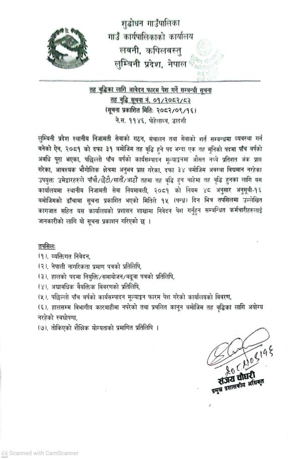तह वृद्धिका लागि आवेदन फारम पेश गर्ने सम्बन्धि सूचना |