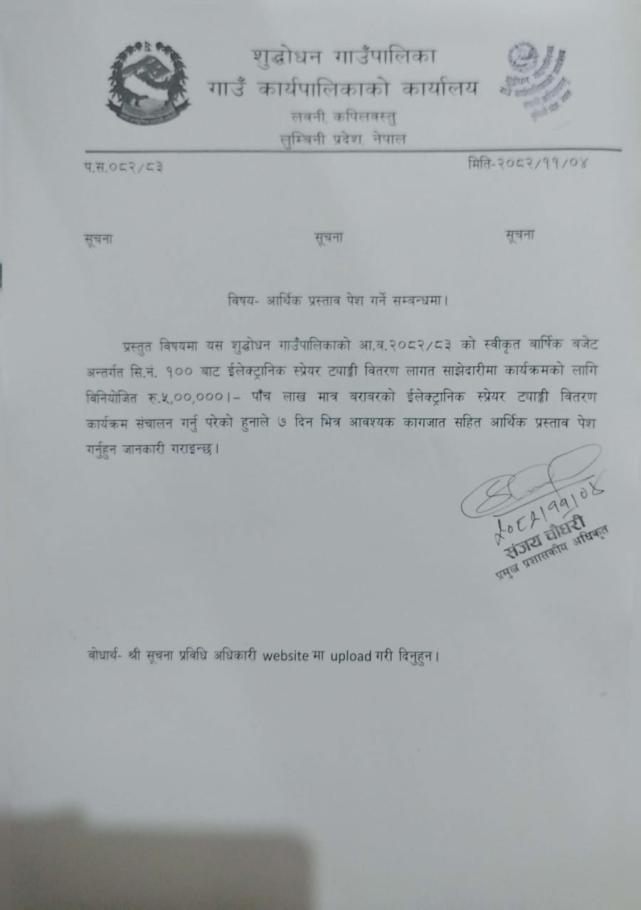 सार्वजनिक खरिद/बोलपत्र सूचना