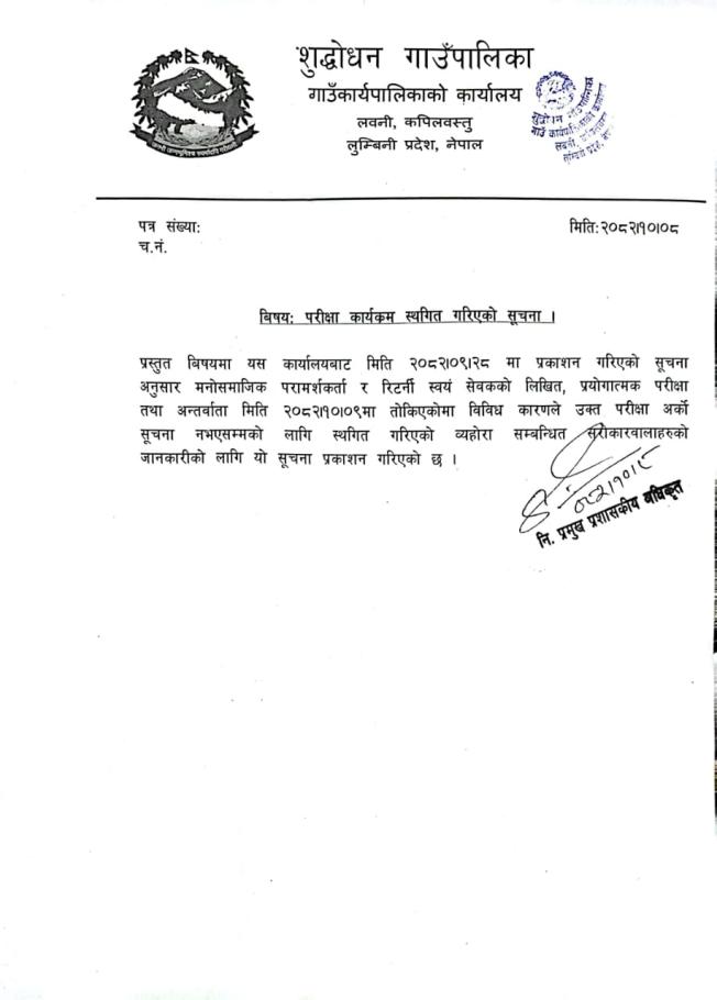 » परीक्षा कार्यक्रम स्थगित गरिएको सम्बन्धमा |