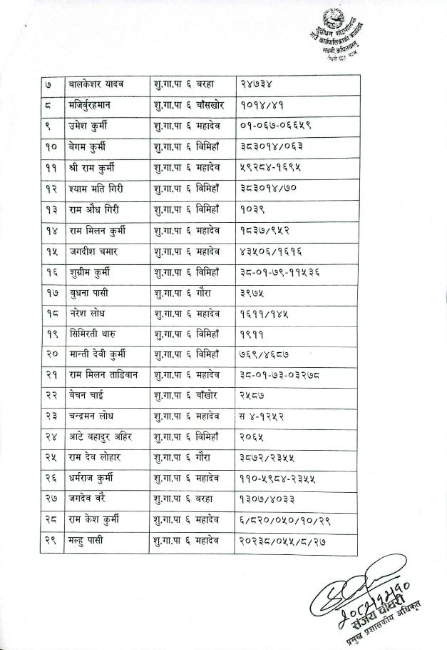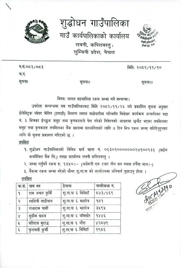 लागत सहभागिता रकम जम्मा गर्ने सम्बन्धमा |